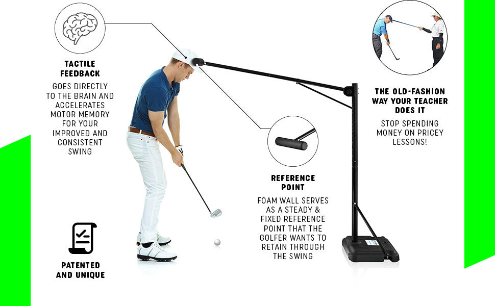 Looking for the most effective 'steady head' and posture golf trainer? Then look no further! Instantly get the feel of your desired and improved swing with the PRO-HEAD Golf Trainer. Correct your golf posture, develop the motor memory to take your new swing to your course. This golf training aid is made for all golfers, all ages, all body heights, men, women, kids, beginners, juniors and advanced players, left and and right hand players. Top-rated by PGA teachers and pros. Stun your playing partners!
